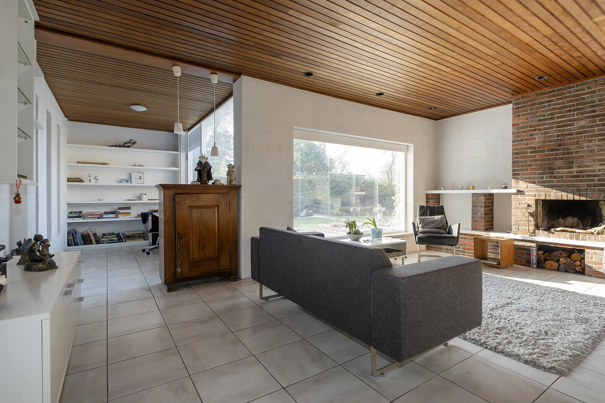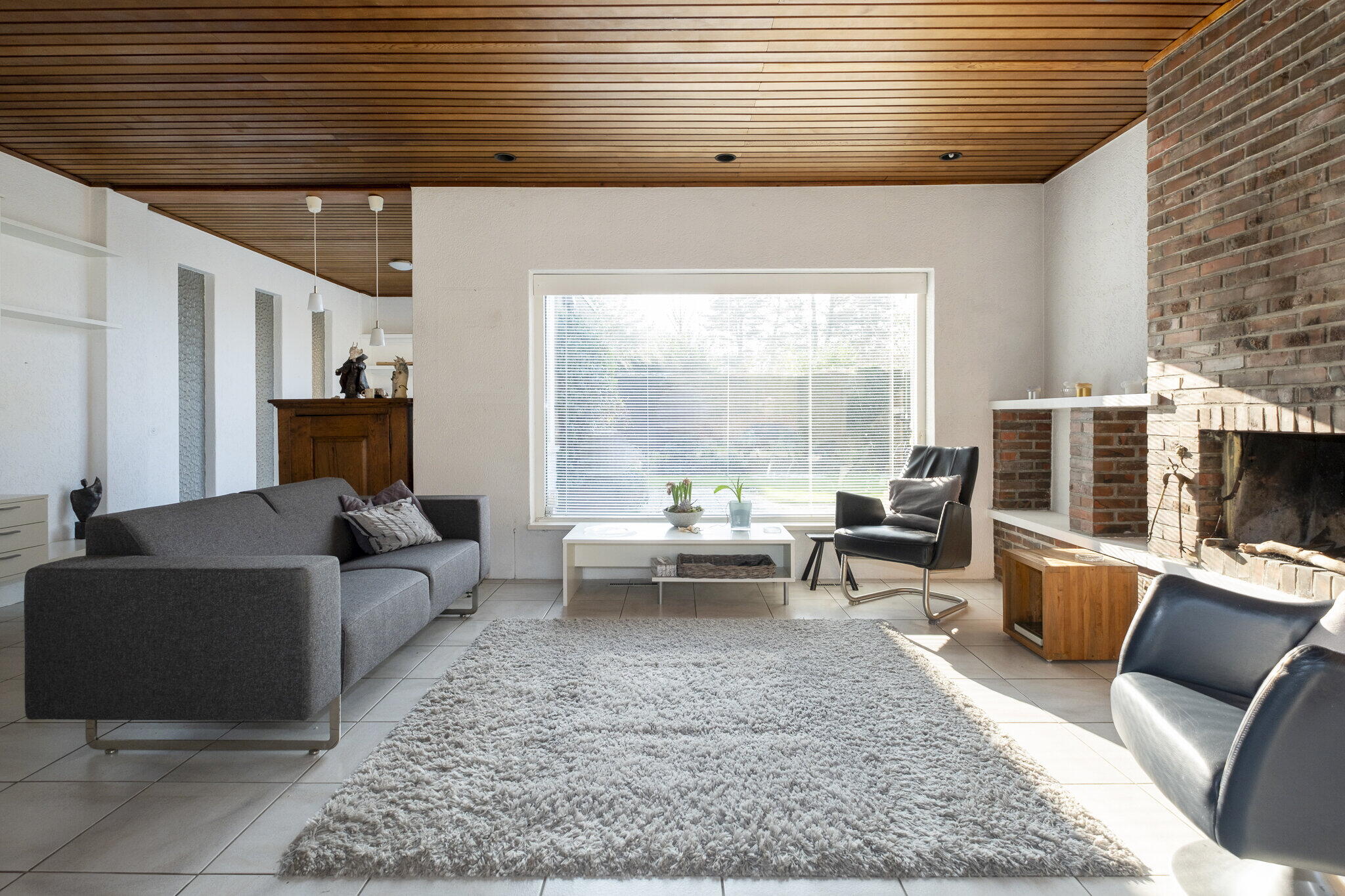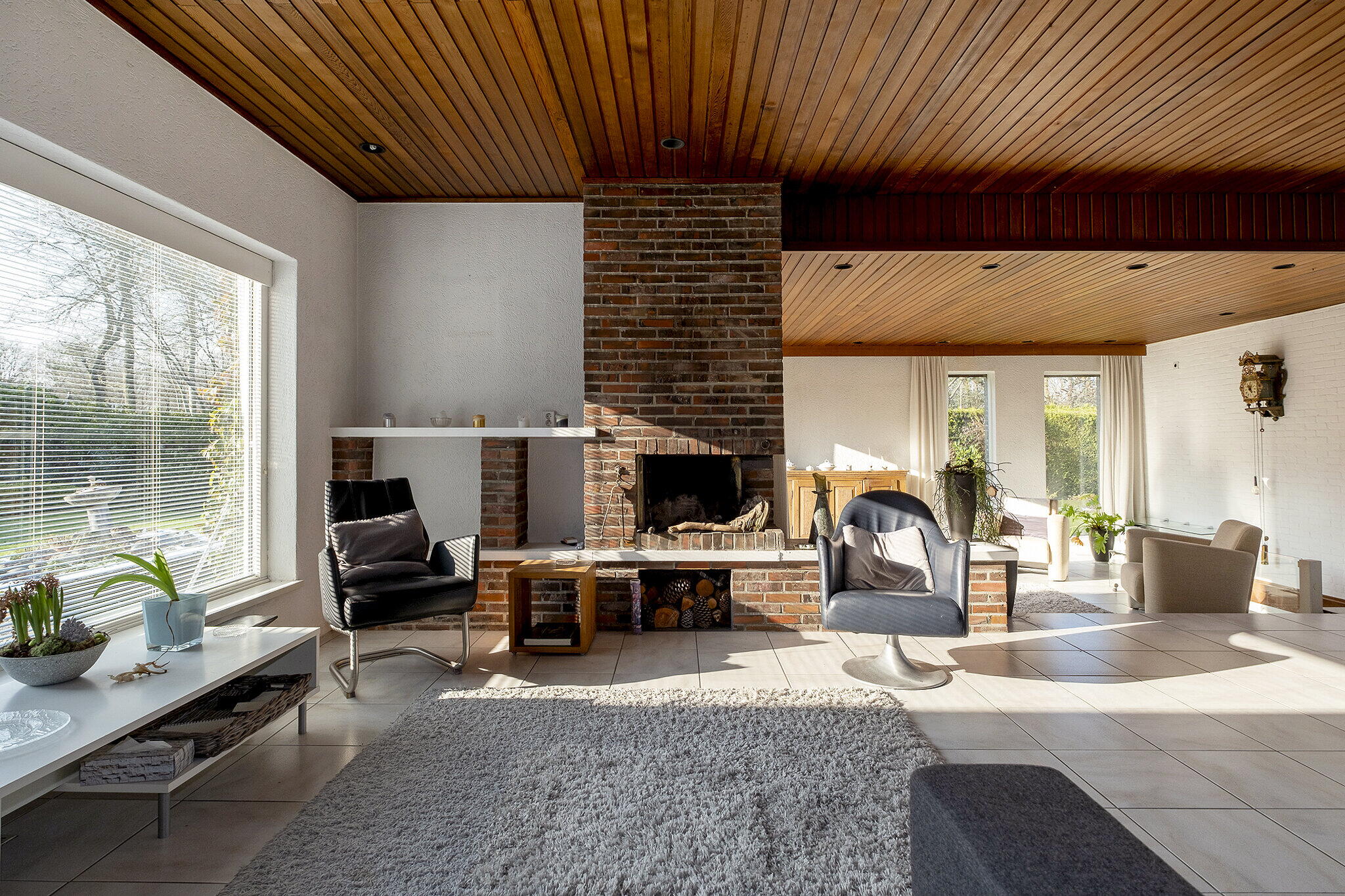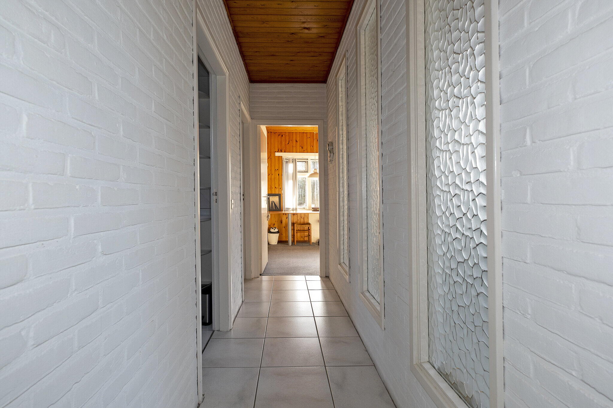 Entree in de hal met toegang tot de verschillende vertrekken. De ruime woonkamer (ca. 71m2) kenmerkt zich door veel lichtinval en beschikt over een sfeervolle open haard. Daarnaast is er een extra hoek in de woonkamer die momenteel is ingericht als werkplek, maar ook uitstekend geschikt is als tv-kamer of leeshoek. Vanuit de woonkamer is er toegang tot de kelder, ideaal als provisie- of opslagruimte.