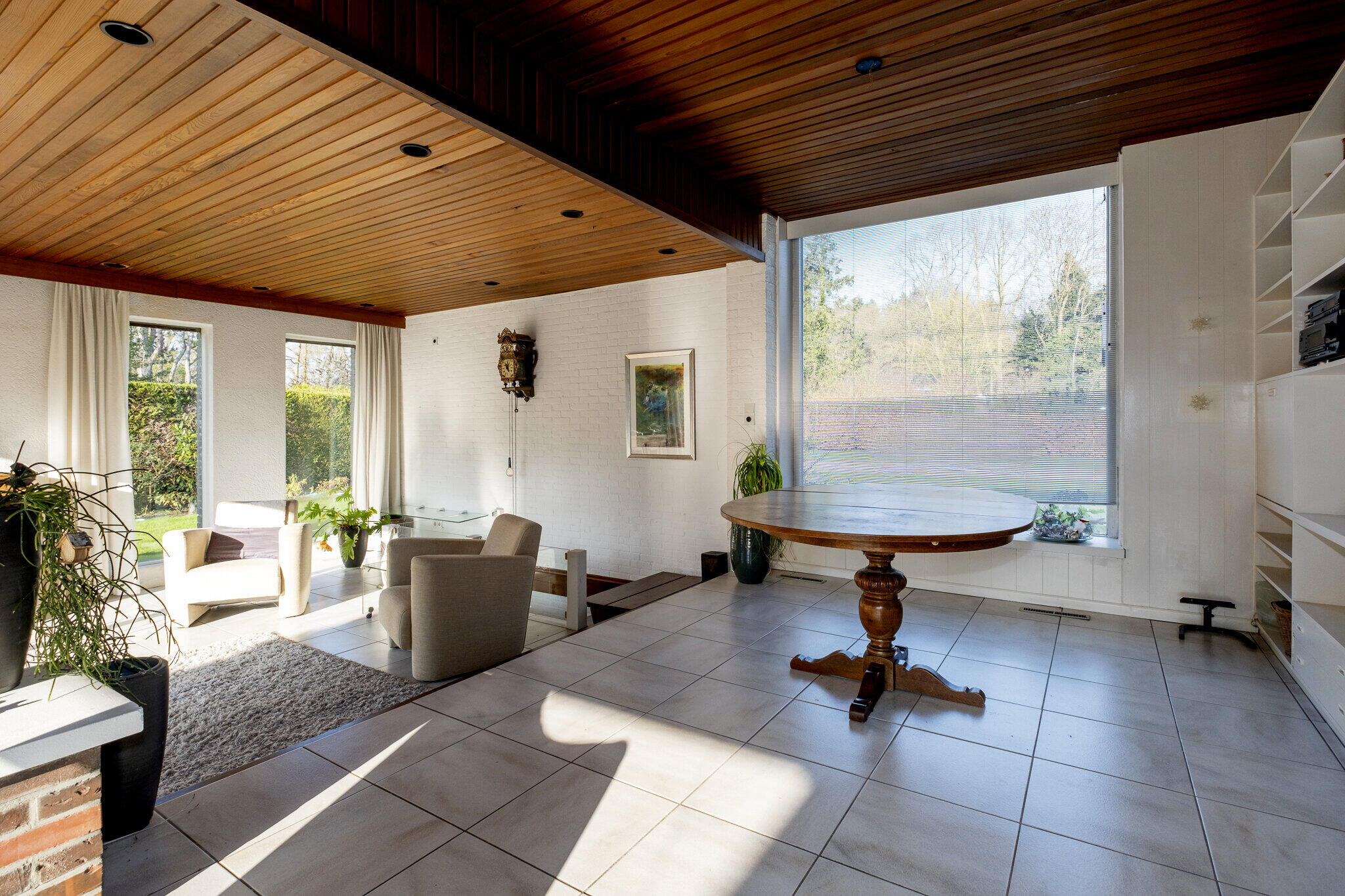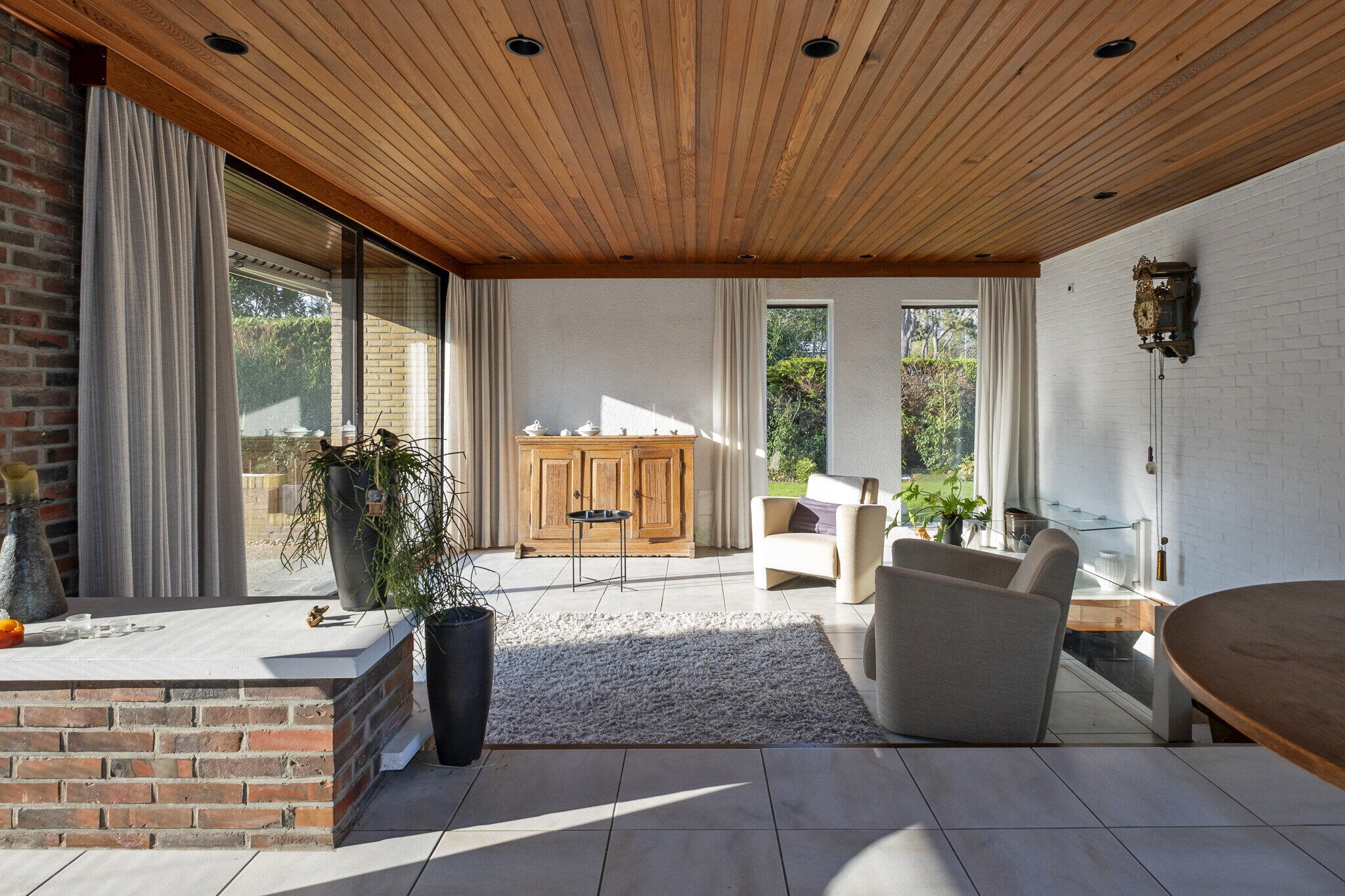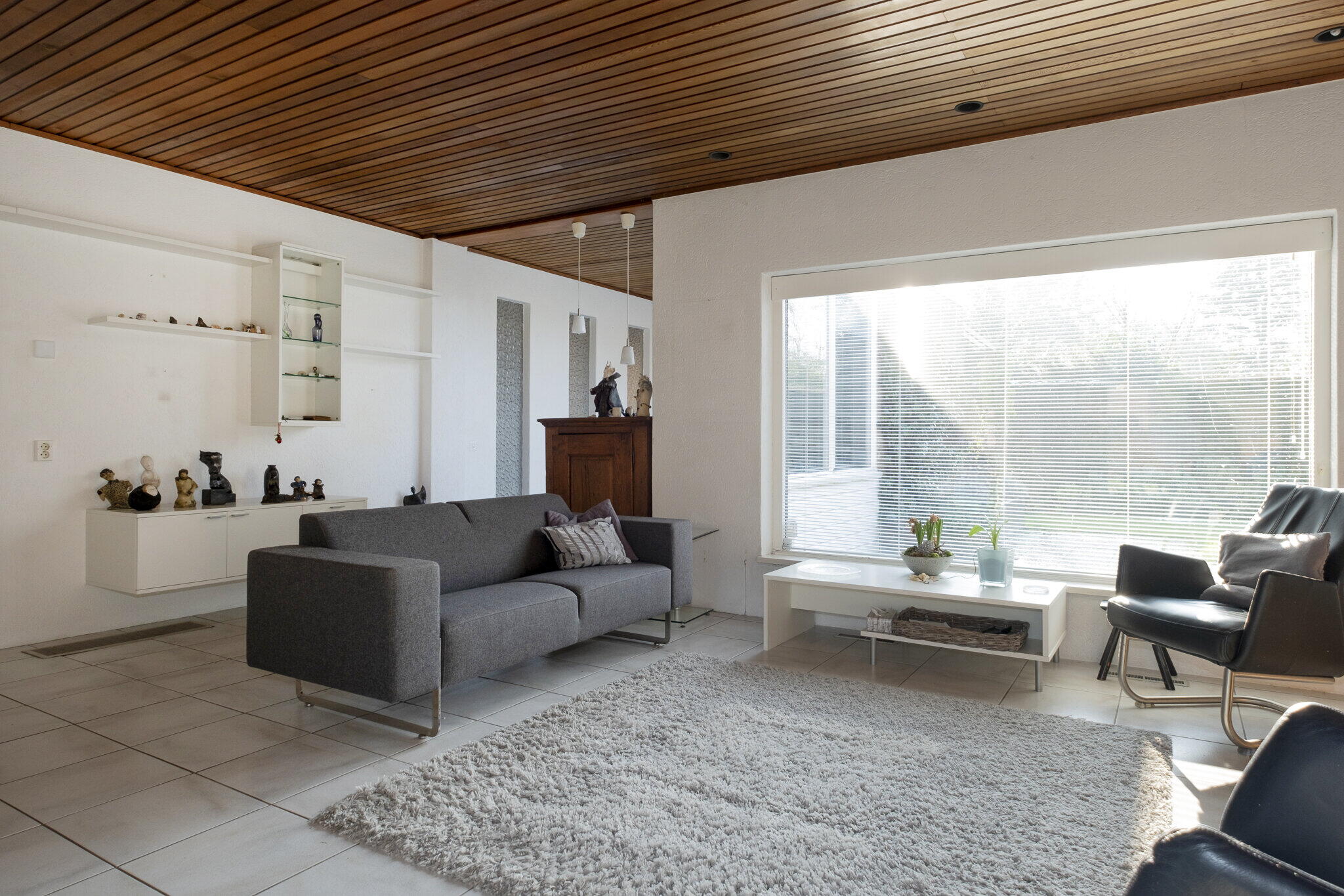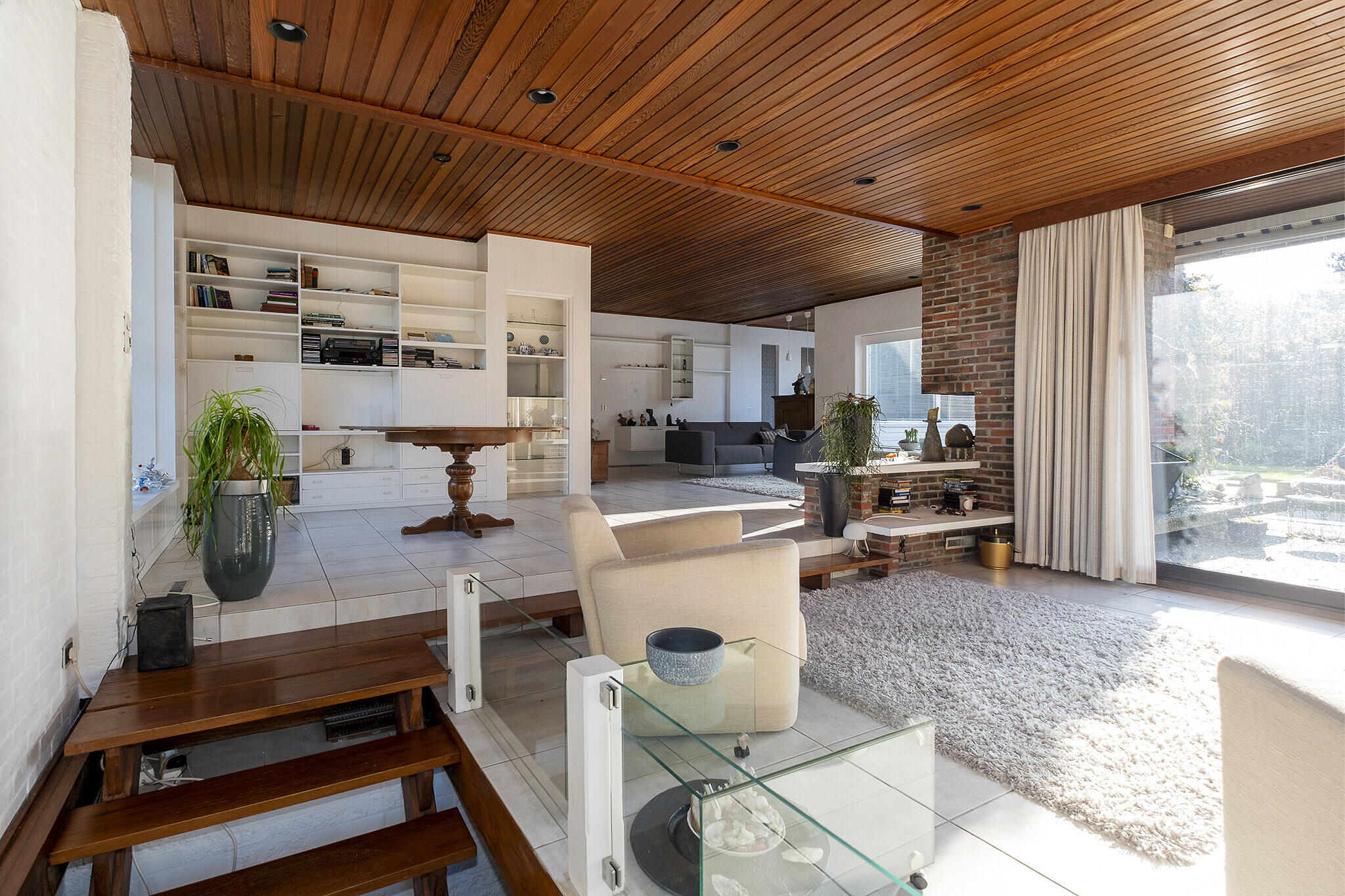Entree in de hal met toegang tot de verschillende vertrekken. De ruime woonkamer (ca. 71m2) kenmerkt zich door veel lichtinval en beschikt over een sfeervolle open haard. Daarnaast is er een extra hoek in de woonkamer die momenteel is ingericht als werkplek, maar ook uitstekend geschikt is als tv-kamer of leeshoek. Vanuit de woonkamer is er toegang tot de kelder, ideaal als provisie- of opslagruimte.