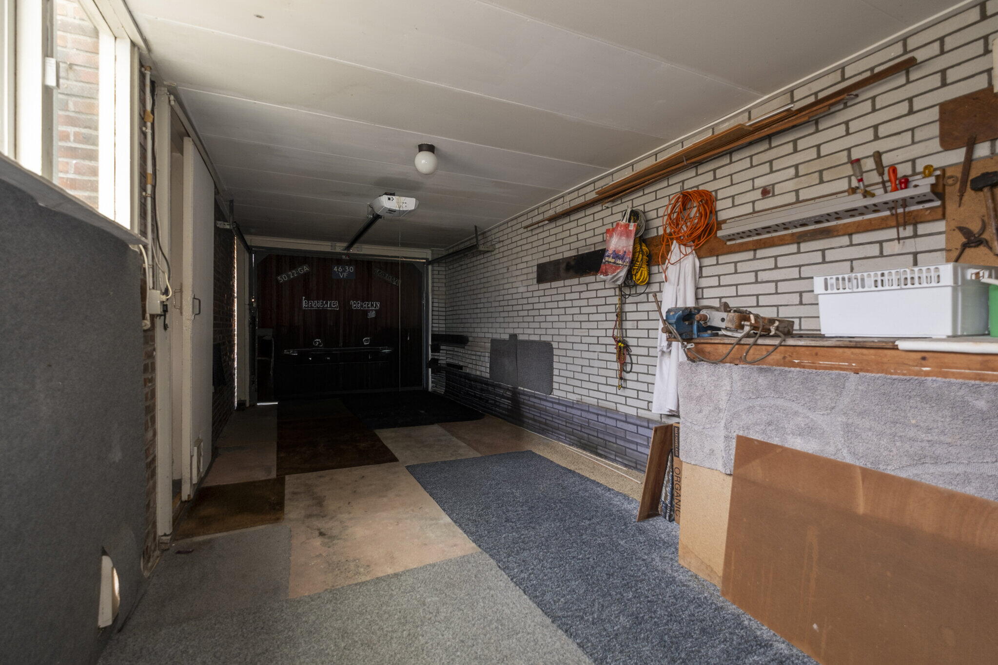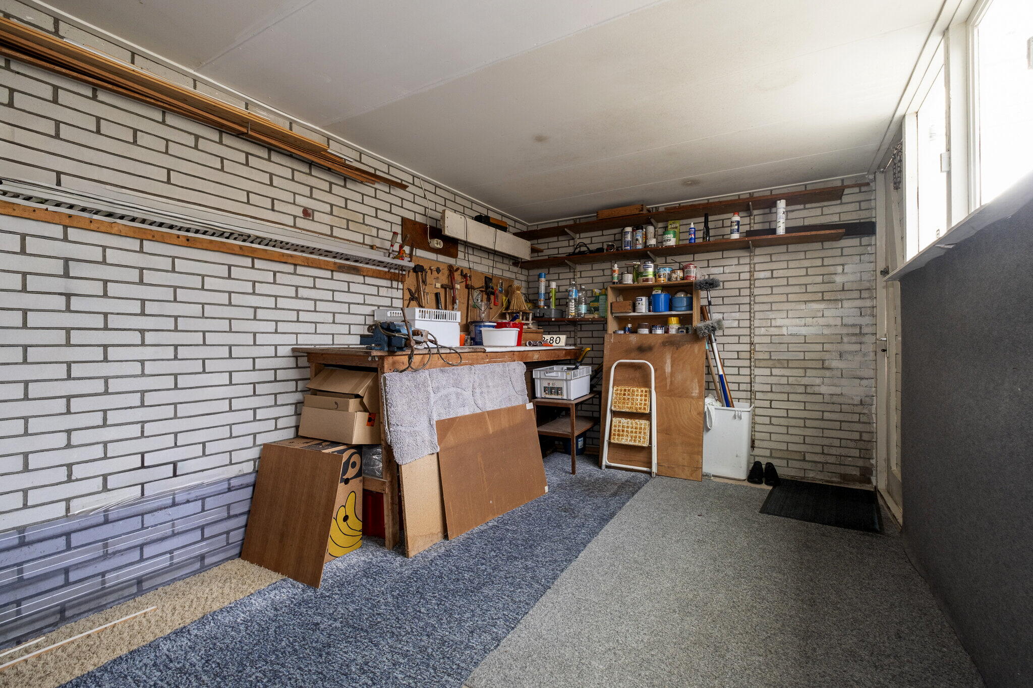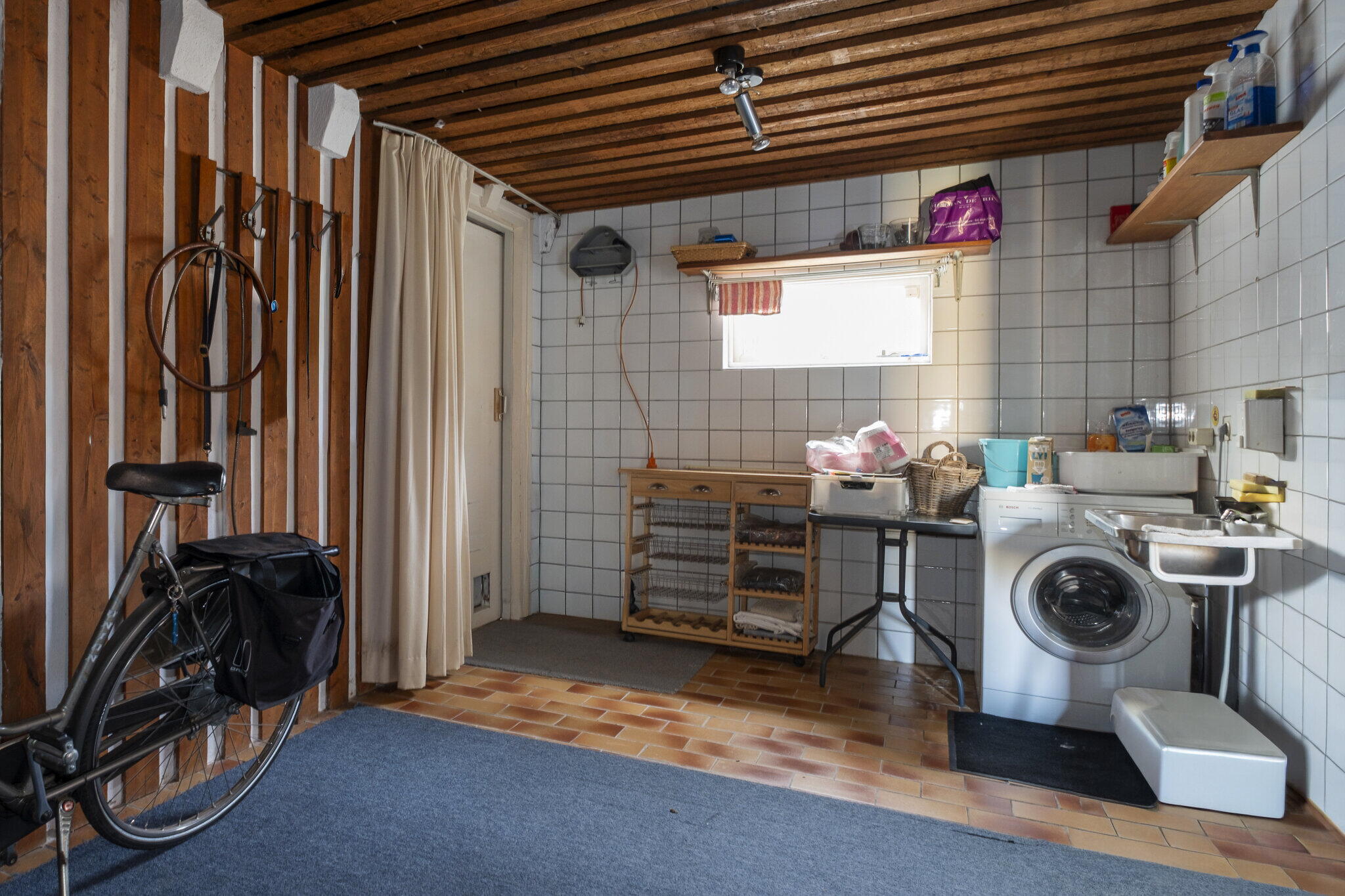 Naaste de ruime entree (van maar liefst ca 27m2) bevindt zich een ruime bijkeuken (voorheen garage) waar de heteluchtverwarming unit en de CV-ketel (2022) zijn opgesteld. Vanuit hier is tevens toegang tot de garage met ruimte voor één auto.